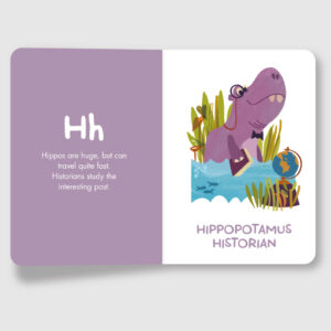 With each animal having their own alliterative occupation, this playful alphabet book takes children beyond learning their letters. An alligator takes up the role of an astronaut, while a bear bakes, an eagle explores and a fox fights fires. Not to mention the lion librarian, postman panda and yoga-teaching yak… With perfectly-scanning verse and bright, engaging illustrations on each page, this is a book that will appeal to designers, artists and parents as much as it entertains and instructs young readers.