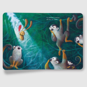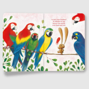 Ciacio is a rabbit-bear. He is small but very special. He goes on long journeys to visit extraordinary places all over the world. His curiosity sometimes puts him in peril, but his sweetness always brings help from charming, new friends. He is excited to tell you about the fascinating and beautiful places he’s been! Our intrepid friend Ciacio is on another surprise voyage, this time thanks to a mysterious feather. Being among the curious and beautiful creatures of the Amazon rainforest inspires Ciacio with a new mission. Ciacio ‘CHA-choh’ (rhymes with STOP-go).