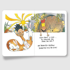 In the final book of this trilogy written by Kalpana Subramanian, the siblings are thinking about homes large and small, long and tall. Animals live in all kinds of places – from bears in their cosy caves to rabbits in underground burrows. Even human homes are not all alike, although Anahi and Vir seem to agree that it’s the people who live inside a house who really make it a home. This colourfully illustrated and beautifully written book has a lightness of touch which makes it the perfect way to begin challenging discussions about what it means to be different, and what makes us the same.