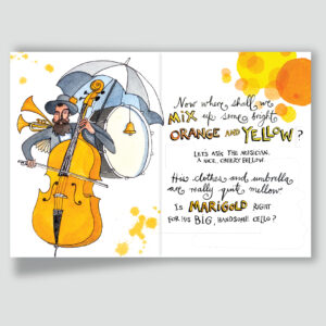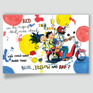 Prashant Miranda’s whimsical illustrations are paired with lilting rhyming text in this board book which offers a quirky glimpse into an artist’s imagination. From vermillion cats wearing glorious hats, to violet yurts and berry desserts, siblings Anahi and Vir are propelled into a world of colour. Beginning with the primary colours before progressing into all manner of mixing possibilities, there’s no limit to the fantastical scenarios which they conjure up with their eccentric artist friend. Perfect for reading aloud, Arielle North Olson adopts a mixture of familiar and more complex vocabulary, allowing for plenty of discussion and re-readings. While children can use the book to create secondary and tertiary shades from the primary colours, it’s as useful as a prompt for creative writing and drawing exercises. A section at the end draws out some unusual colour facts, extending the reach of the book for older readers.