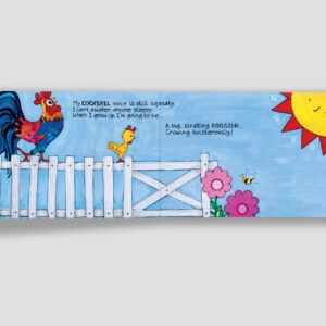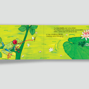 Baby animals imagine what they will grow up to be, in this book which introduces young children to different birds, mammals, reptiles and amphibians. The sounds animals make and the environments in which they live are woven into punchy rhyming verse, and accompanied by bright, bold illustrations. Did you know that a baby kangaroo is no bigger than a jellybean when it is born? An extensive postscript written by Arielle North Olson and Christy Olson Kennedy has interesting information about every animal featured. As well as extending the reach of the book, it can be used by adults in planning activities inspired by it.